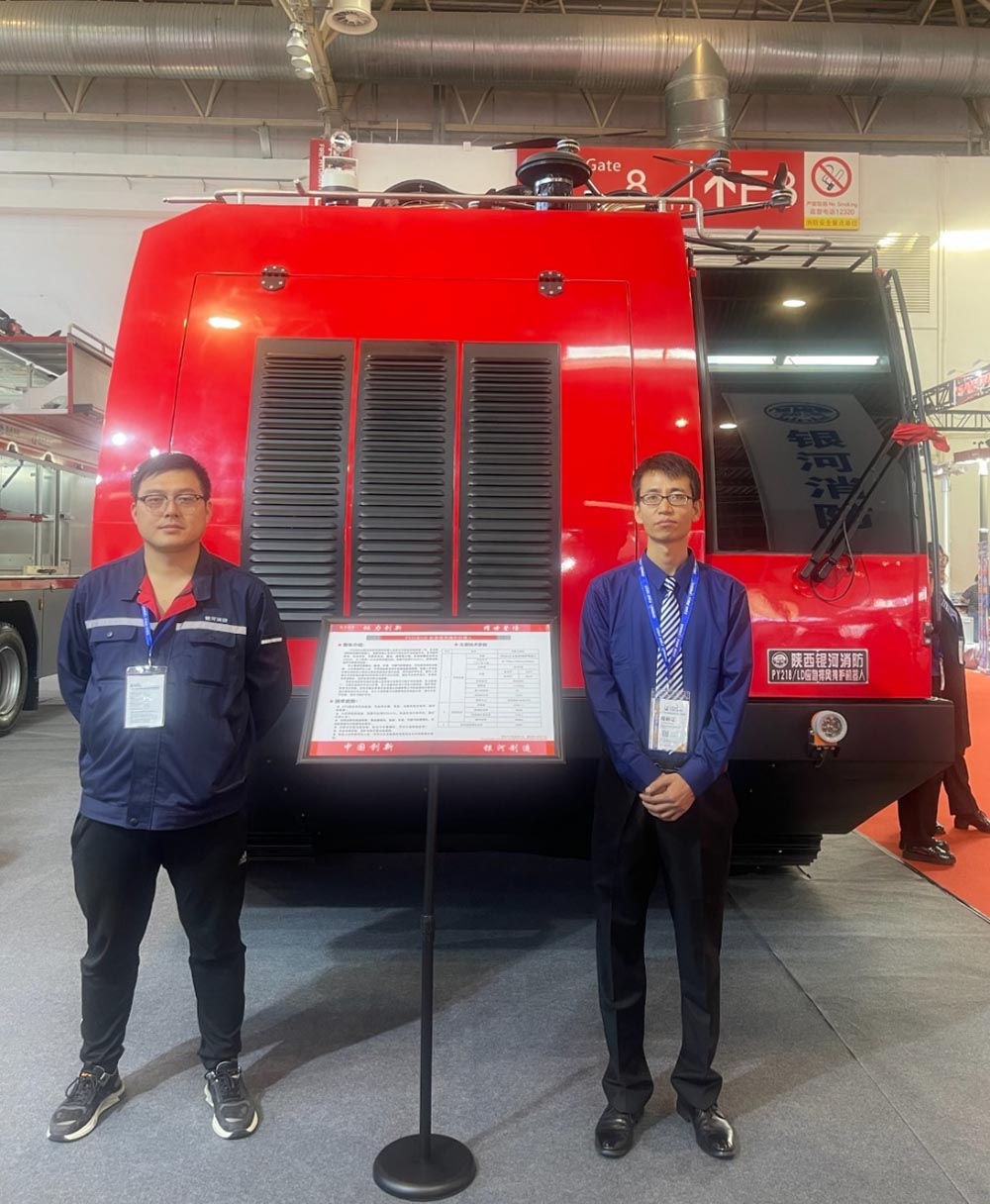 銀河消防公司此次參展新品積極響應(yīng)“全災(zāi)種、大應(yīng)急”指導(dǎo)方針,從市場(chǎng)需求出發(fā),秉承先進(jìn)、實(shí)用、穩(wěn)定、高效設(shè)計(jì)理念,從高層建筑滅火、石化搶險(xiǎn)排風(fēng)掩護(hù)、機(jī)場(chǎng)消防滅火和多功能城市主戰(zhàn)等方面入手,研發(fā)出無(wú)人機(jī)壓縮空氣泡沫消防車、應(yīng)急排風(fēng)掩護(hù)機(jī)器人、機(jī)場(chǎng)高壓噴霧消防車、多功能搶險(xiǎn)救援車四款新品車型。無(wú)人機(jī)壓縮空氣泡沫消防車和應(yīng)急排風(fēng)掩護(hù)機(jī)器人以設(shè)計(jì)理念新穎、外形獨(dú)特、智能化程度高、技術(shù)領(lǐng)先、實(shí)用性強(qiáng)等特點(diǎn)一經(jīng)亮相便吸引眾多目光,成為本次展會(huì)備受矚目的明星產(chǎn)品,吸引了多批專家和行業(yè)人士前來(lái)觀摩。
