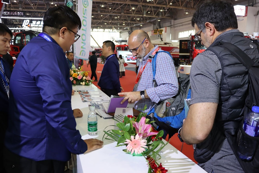 銀河消防公司作為展會(huì)的老牌參展商,此次展會(huì)推出的消防車輛,以其新穎的外觀和實(shí)用性能,吸引了一批批專家和行業(yè)代表前來(lái)觀摩,參展觀眾較往年也有了明顯變化,除全國(guó)各省份消防救援總隊(duì)、中石油、武警學(xué)院、專業(yè)檢測(cè)機(jī)構(gòu)等之外,境外參展人群創(chuàng)造新高。來(lái)自俄羅斯、印度、阿根廷和土耳其等國(guó)家的專業(yè)買家,與公司專業(yè)技術(shù)人員就技術(shù)引進(jìn)、裝備采購(gòu)事宜進(jìn)行了廣泛溝通與深入交流,銀河消防公司產(chǎn)品的研發(fā)能力和技術(shù)水平得到了高度認(rèn)可。
